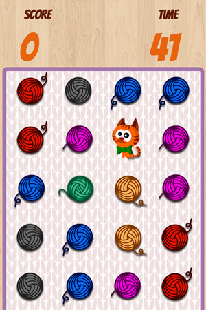 Working off of a shared Game Design Document, attendees contributed ideas and assets throughout the day. The group used a basic match three puzzle game template as a starting point to then create their own game using Corona SDK. The entire class designed concepts that changed the game in completely unpredictable ways. By the end, we were sifting through ideas and prototyping them live. After settling on a brilliant mechanic where only one piece on the board can be swapped, the class came up with a bunch of themes for the game. Ultimately we arrived at cats, ‘nuff said. The theme of the game became a cat that can move around the board and swap different colored balls of yarn to make a match of three or more. It wasn’t perfect at first and required several rounds of iteration and testing on Corona SDK, but the team kept pushing until we had something that worked.