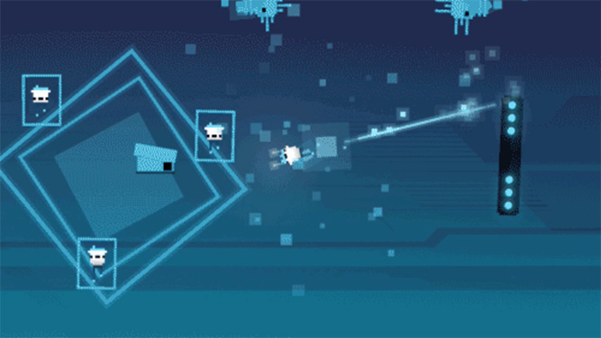 HoPiKo is all about speed! Using a simple, intuitive touch-swipe control scheme, players must guide the hero through and around a twisted maze of hazards and obstacles, ultimately aiming to strike a dagger through the heart of the evil “Nanobyte virus” — and just when you imagine that you’ve seen this type of game before, HoPiKo mixes up the tried-and-true speed platformer genre with some new twists: