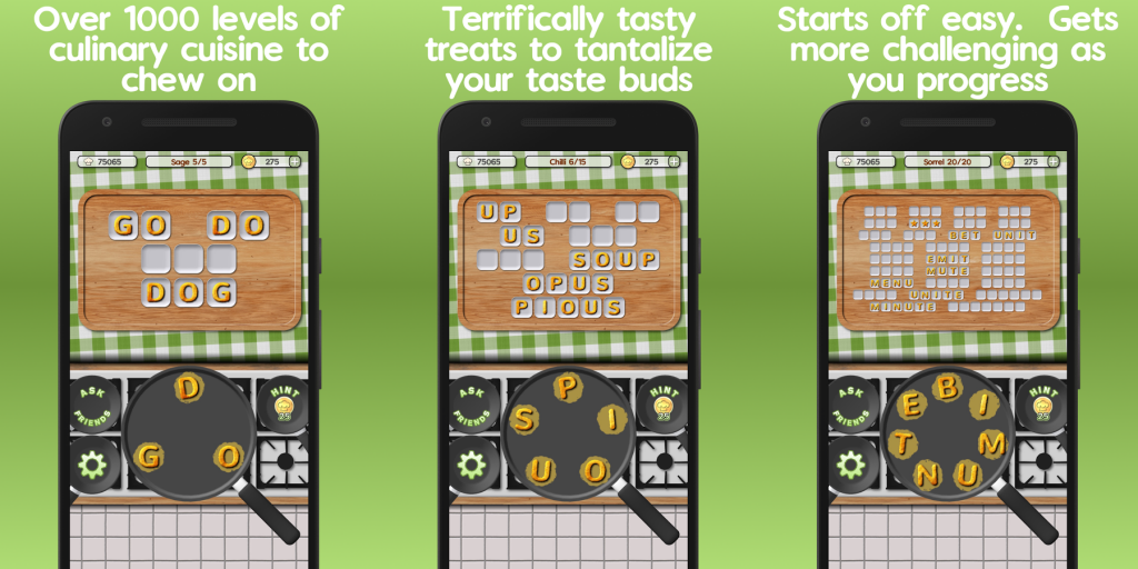 Word Cook contains over 1,000 levels to stimulate your brain as you progress up the culinary ladder with increasingly difficult puzzles. The game contains impressive graphics and animations that are common with many of today’s high caliber games. It also features hints and the ability to ask friends for help.