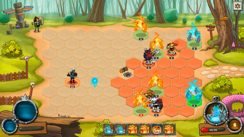 Battles on the battlefields go through the classic turn-based hex system, which appeared since the time of the King’s Bounty. The player has access to various kinds of creatures with special abilities and abilities, as well as a book of spells.